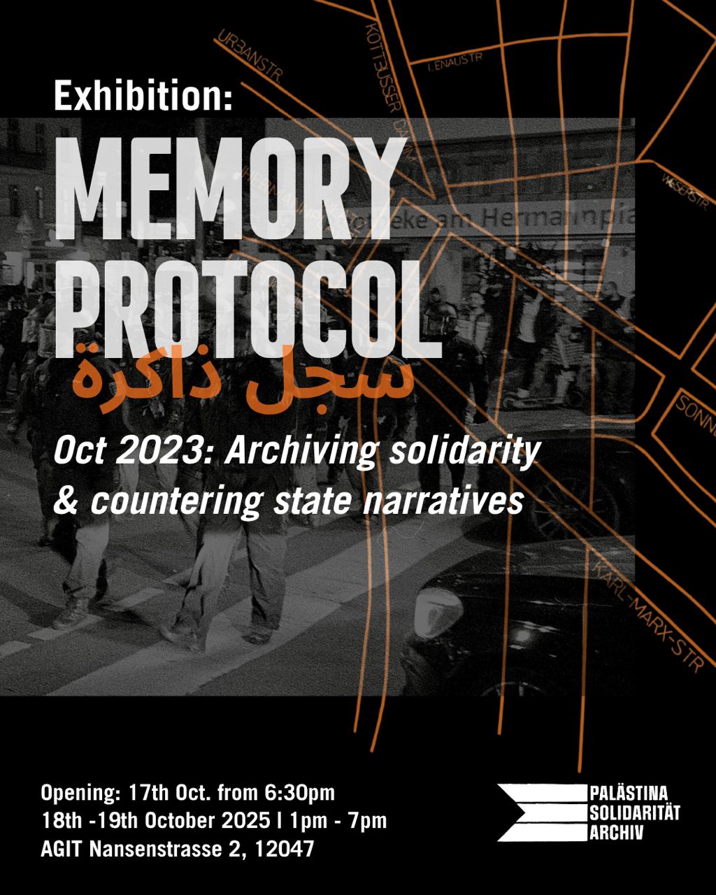 Our mission is to document the rising repression in Berlin and all resistance to it. We collect materials that challenge and expose the racism of the German state and media, tracing historical currents of Palestine solidarity in Berlin through to the present day. We collaborate closely with photographers, support groups, lawyers, and Berlin solidarity groups, preserving material and making raw footage available for those with course court cases.
